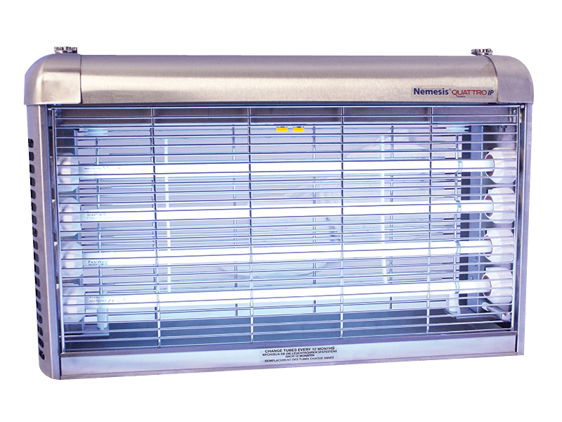 Le Nemesis Quattro IP est un désinsectiseur industriel, entièrement en acier inoxydable, conçu pour résister aux ambiances très humides ou corrosives et aux projections d’eau (indice IP 24).
